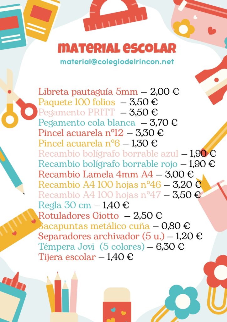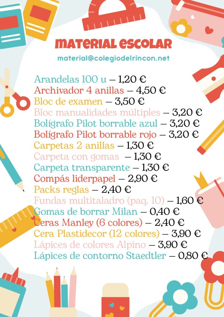 1. Pedir por correo al material@colegiodelrincon.net